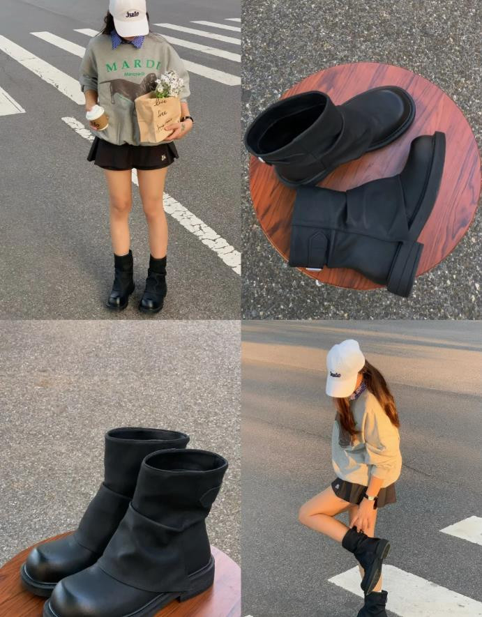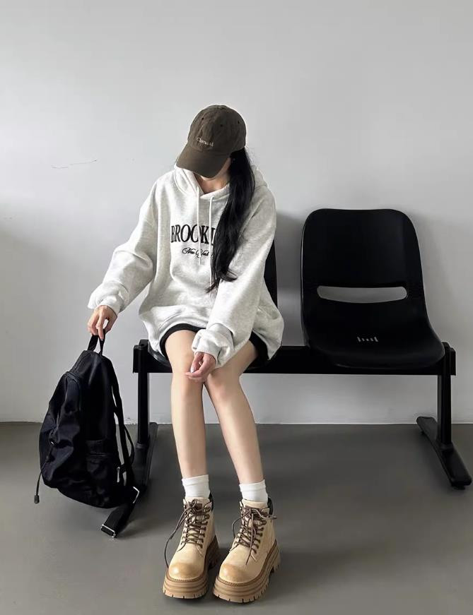 套头卫衣+短靴