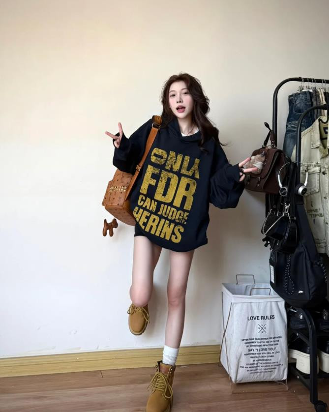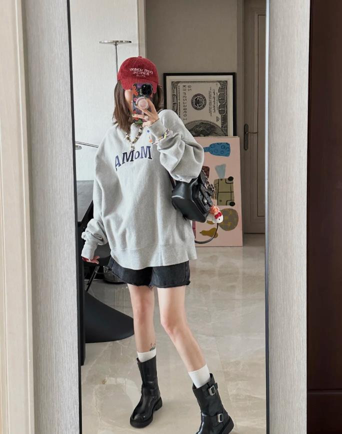 而且,卫衣搭配短靴也适合各种身材,对于小个子来说,这样的穿搭显高,还能优化整个身材比例。同时,这种穿搭不会局限于某一种风格,你完全可以根据自己的喜好来进行调整。
